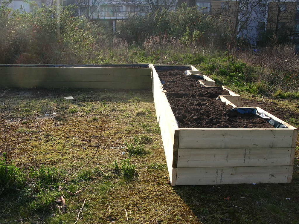 More sterling work from a corporate volunteer team. This time they’ve built the base of the fencing that will enclose our new bee zone. We hope to develop a natural beekeeping project at the garden – see links here –