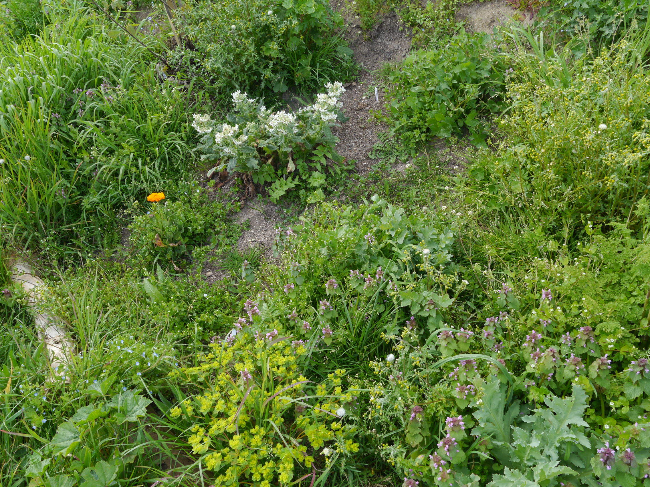 Plant up with perennial species e.g. strawberry, bush fruits. In spring we’ll plant wild white clover as a matrix and ground cover.